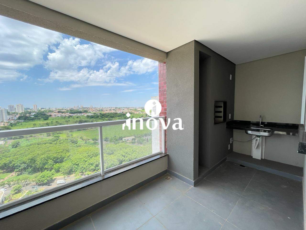 - Varanda gourmet com churrasqueira e uma bela vista;