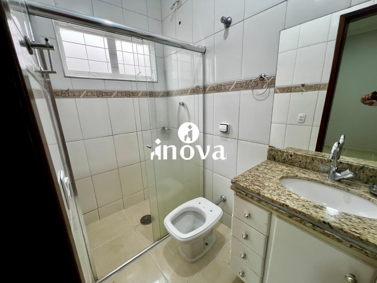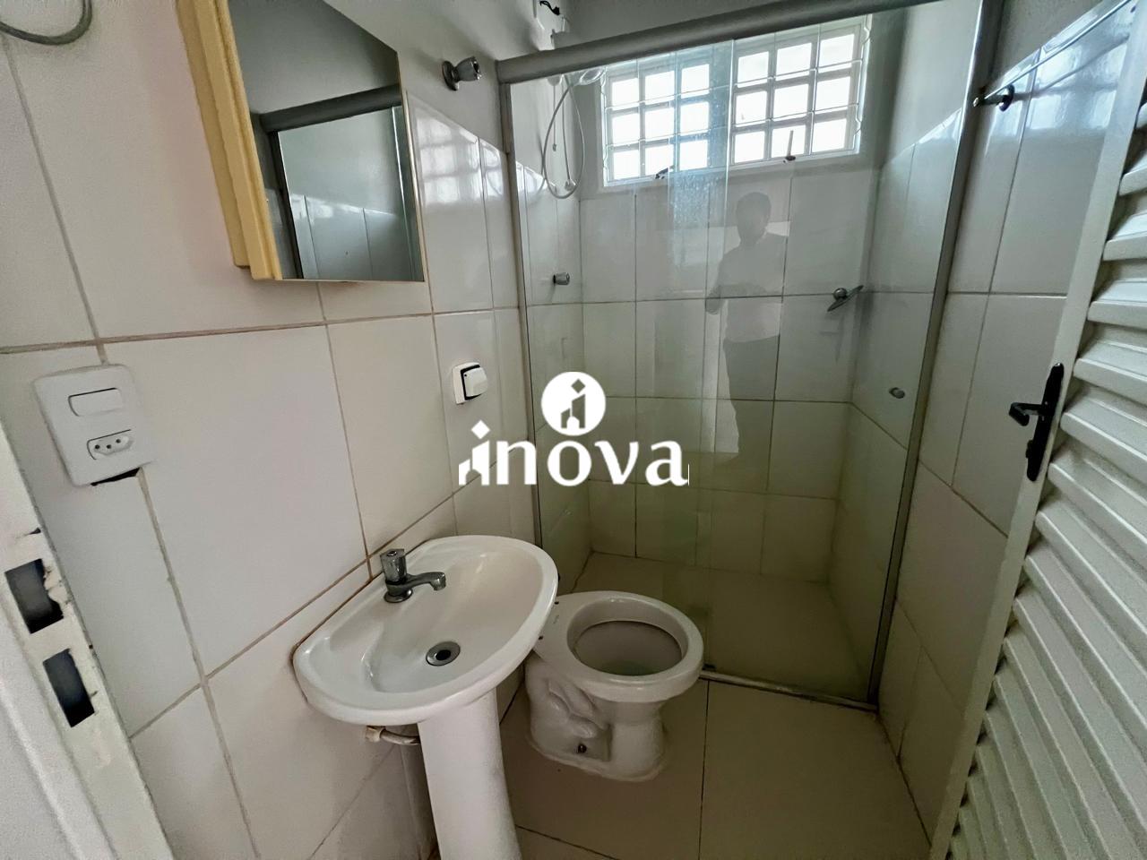 - Banheiro social com armário, espelho e box;